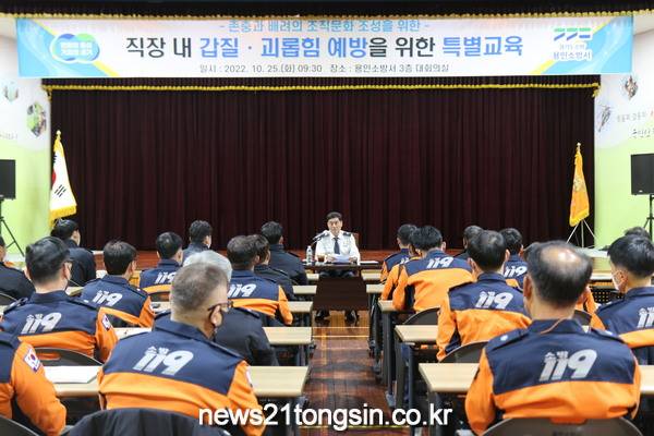 용인소방서(서장 서승현)는 25일 직장 내 갑질·괴롭힘 예방을 위한 특별교육을 실시했다고 밝혔다.