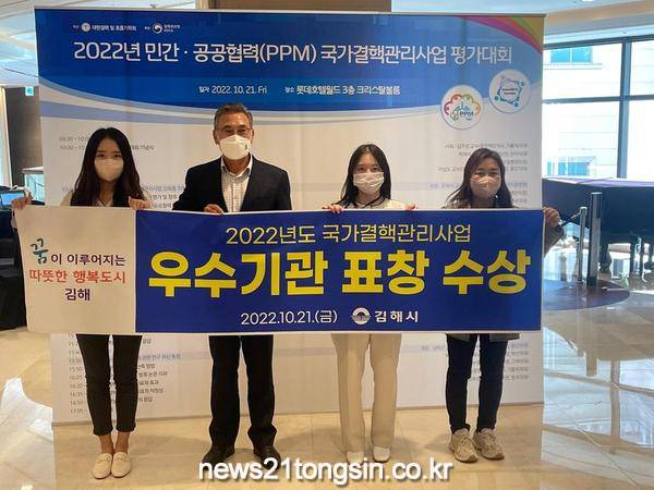 김해시(시장 홍태용)가 ‘2022년 민간공공협력(PPM) 국가결핵관리사업 평가대회’에서 결핵환자 관리사업 우수기관으로 선정돼 질병관리청장 포상을 수상했다고 24일 밝혔다.