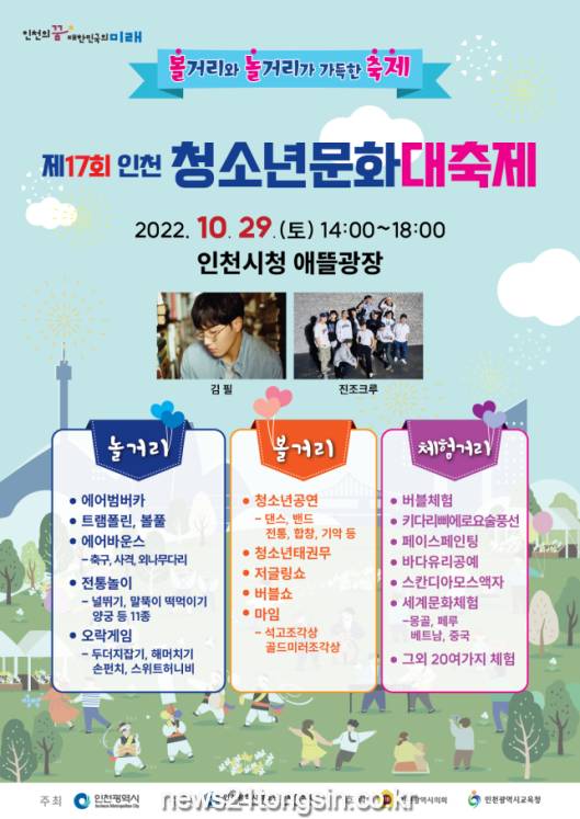 인천광역시(시장 유정복)는 10월 29일(토) 오후 2시부터 시청 인천애뜰광장에서 「제17회 인천 청소년 문화대축제」를 개최한다고 밝혔다.