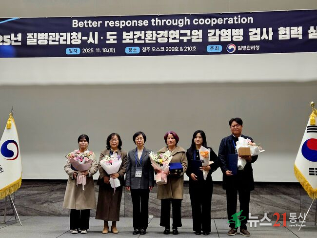 [뉴스21 통신=최세영 ] ▲사진제공=울산광역시울산보건환경연구원은 지난 18일 개최된 ‘2025년 질병관리청-시·도보건환경연구원 감염병 검사 협력 심포지엄’에서 ‘감염병 검사 우수기관’으로 선정돼 질병관리청장 표창을 수상했다고 밝혔다. 연구원은 지역 내 감염병 확산을 차단하기 위해 법정감염병 76종에 대한 확인.