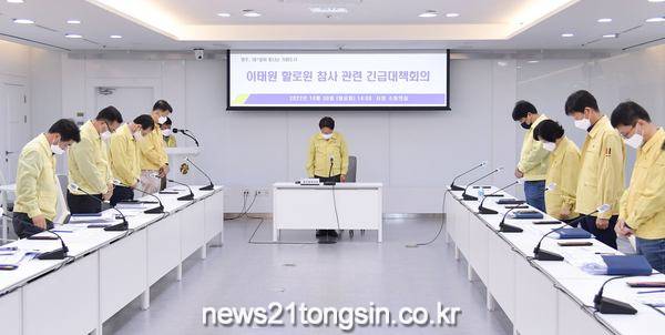이날 회의에는 강 시장을 비롯해 실·국장 등 20여 명이 참석했으며 광주시는 회의 시작에 앞서 희생자에 대한 묵념을 진행하고 곧바로 상황 보고 및 안전 대책, 추모·애도기간 운영 등에 대해 논의했다.
