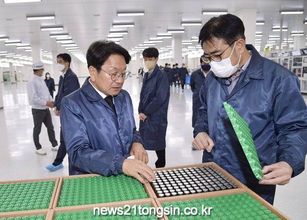 참석자들은 논의에 앞서 김대웅 세방리튬배터리㈜ 대표이사의 안내에 따라 공장 생산라인을 살펴보기도 했다.