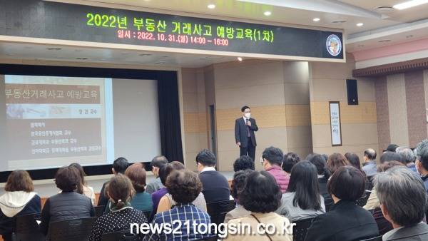 교육은 김포대학교 부동산학과 장건 교수가 강사로 나서 부동산 거래관련 법률문제 등을 사례 중심으로 설명했다.