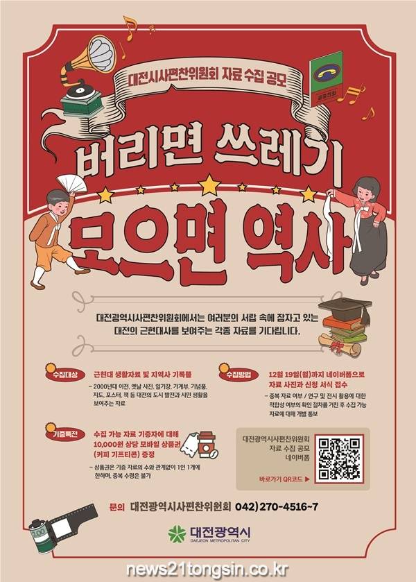 수집 대상 자료는 2000년대 이전 옛날 사진, 일기장, 가계부, 기념품, 지도, 포스터, 책 등 대전의 발전과 시민들의 생활을 보여주는 자료나 기록물 등이다.