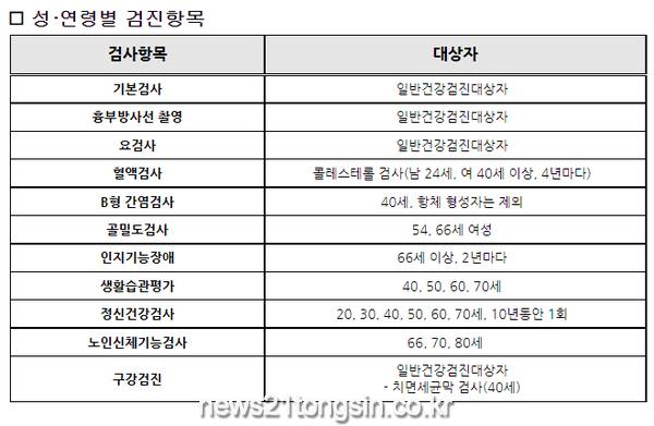 건강검진 항목은 심·뇌혈관 질환의 위험요인인 비만, 이상지질혈증, 고혈압, 당뇨병 등을 조기 발견할 수 있도록 검사 항목이 구성됐다.