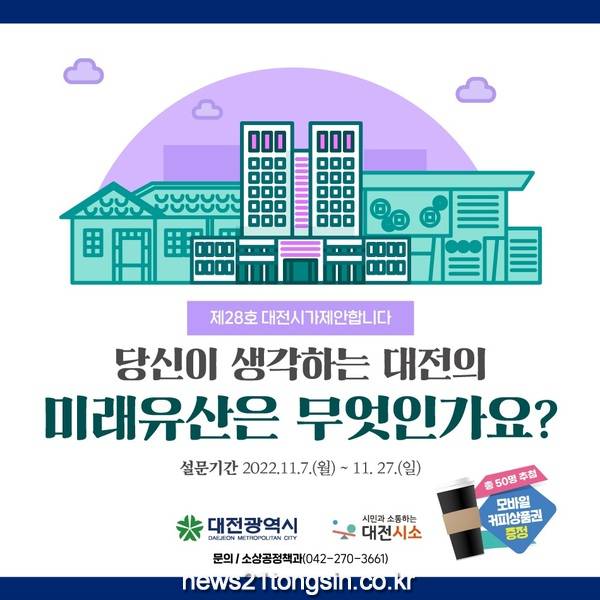 대전시는 ‘대전의 미래유산’ 선정을 앞두고 시에서 발굴한 미래유산 후보에 대한 시민 여론 조사를 실시한다고 밝혔다.