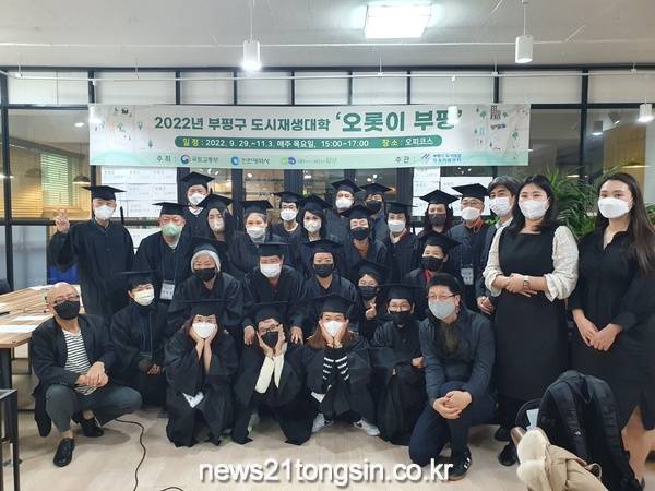 부평구(구청장 차준택)는 지난 3일 갈산동에 위치한 스터디 카페 오피코스에서 2022년 부평구 도시재생대학 ‘오롯이 부평’ 수료식을 진행했다.