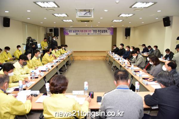 속초시가 최근 대포농공단지 악취 문제 해결을 위한 적극조치에 나선 가운데 8일(화) 직접피해지역 주민대표를 대상으로 ‘현장 주민설명회’를 개최하였다.