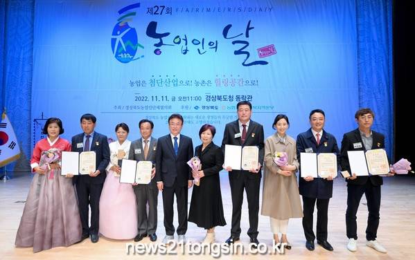 경상북도는 11일 ‘제27회 농업인의 날’을 맞아 도청 동락관에서 농업인에게 고마움을 전하는 농업인의 날 기념식을 개최했다.