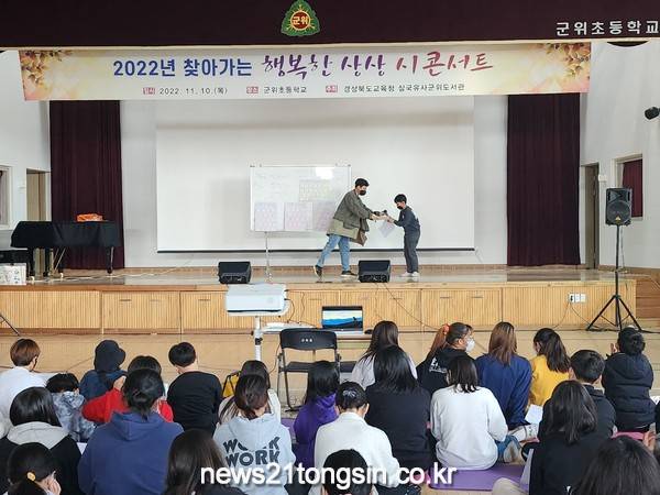경상북도교육청 삼국유사군위도서관(관장 이상욱)은 지난 10일 군위초등학교와 군위중학교 학생들을 대상으로 ‘찾아가는 행복한 상상 시 콘서트’를 개최했다.