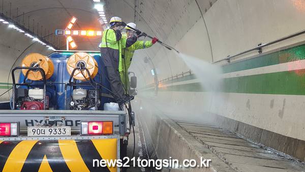 이번 작업에는 공단 자체 인력 19명과 세척장비 6대가 투입되며 터널 벽면과 조명등, 비상유도등, 배수구 등을 중점적으로 청소해 터널 내 조도를 개선하고 미세먼지를 제거한다.