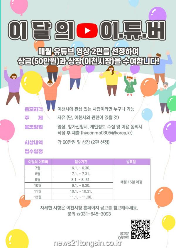 '이달의 이천 유튜버'와 관련한 문의사항은 이천시 홈페이지 공고를 참고하거나 이천시