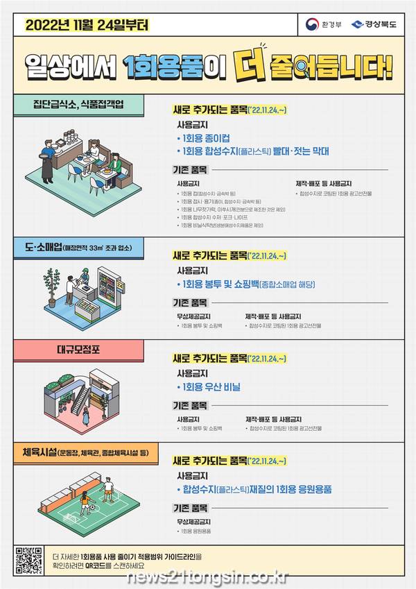 이에 경북도는 새로이 확대·강화되는 일회용품 규제로 인한 사업장과 도민의 불편을 최소화하기 위해 지역 시군 및 유관기관과 함께 특별홍보․점검에 나선다.