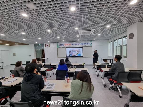 군위교육지원청(교육장 송경란)은 22일 군위교육지원청 창작공작소에서 방과후학교 업무 담당 교사 11명을 대상으로 ‘2022년 방과후학교 활성화 연수’를 개최했다.