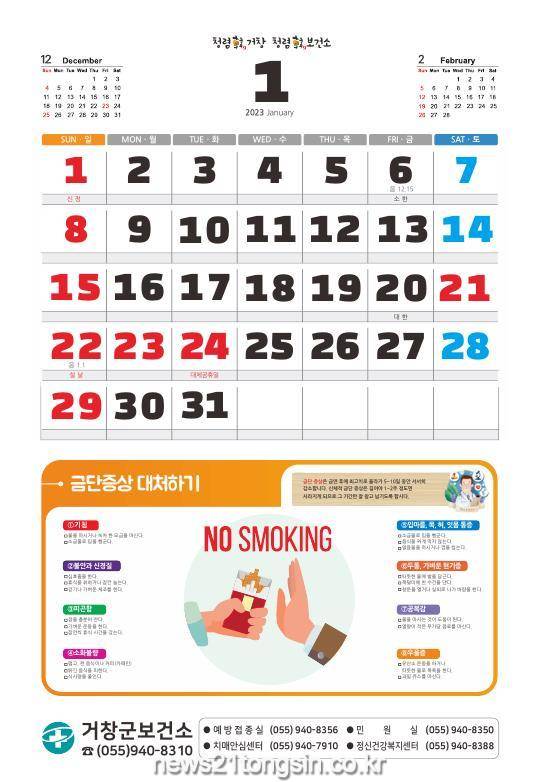 거창군은 오는 24일부터 군민 건강증진을 위한 2023년 건강달력 2000부를 제작하여 보건기관 방문 민원인을 대상으로 배부한다고 23일 전했다.