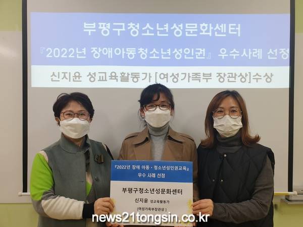 이정호 부평구 청소년성문화센터장은 “이번 수상을 계기로 쉽게 이해하고 실천할 수 있는 다양한 교육을 기획해 장애 아동·청소년의 성적권리 보장에 앞장서겠다”고 말했다.