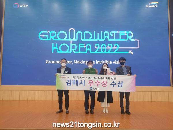 김해시는 환경부에서 통합물관리시대 지하수의 중요성을 알리기 위해 주최한 ‘그라운드워터 코리아(Groundwater Korea) 2022’ 행사에서 지하수 보전관리 우수지자체(우수상)에 선정됐다고 23일 밝혔다.