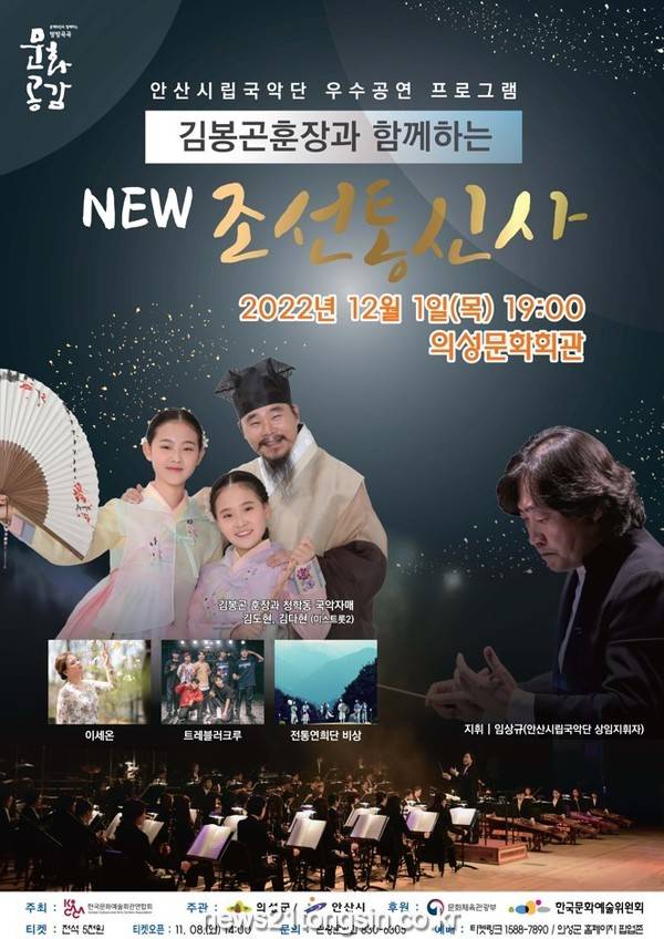 의성군은 한국문화예술회관연합회가 주최하는 ‘2022 문예회관과 함께하는 방방곡곡 문화공감’ 공모사업 중 국공립 우수공연프로그램으로 선정된 ‘김봉곤훈장과 함께하는 NEW조선통신사’ 공연을 오는 12월 1일(목) 오후 7시, 의성문화회관에서 개최한다고 밝혔다.