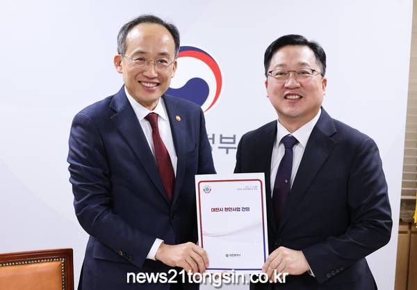 이장우 대전시장은 28일 오후 정부 서울청사에서 추경호 경제부총리와 면담을 갖고 지역 주요 현안의 조속한 해결을 건의했다.
