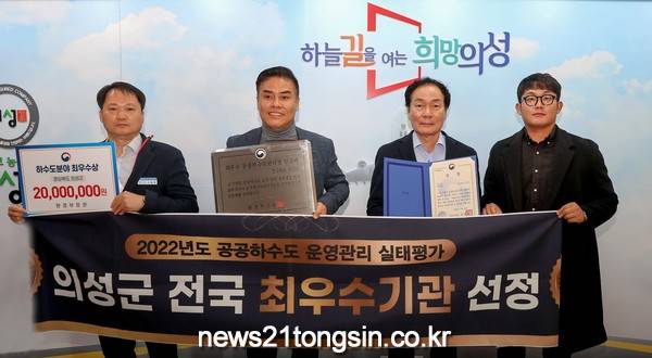 의성군은 24일 경주에서 열린 하수도 연찬회에서 ‘2022년도 공공하수도 운영관리 실태평가’ 전국 최우수기관으로 선정되어 환경부장관 표창과 인증패, 2천만원의 포상금을 받았다.