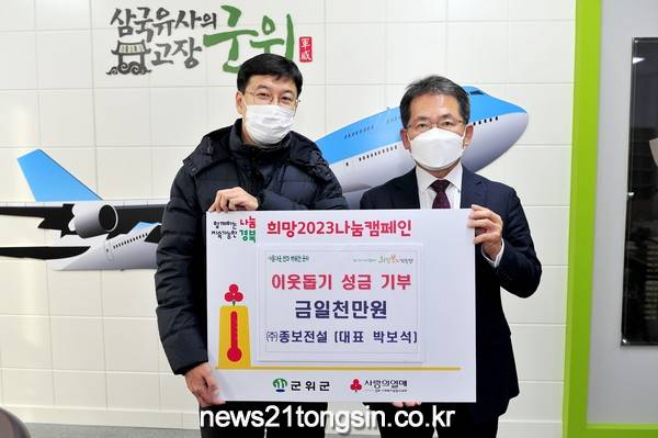 군위군은 지난 1일 ㈜종보전설(대표 박보석)에서 희망2023나눔캠페인 이웃돕기 성금으로 1,000만원을 기부했다고 전했다.