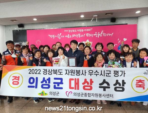 이번 대회에서 의성군은 경상북도 내 23개 시군을 대상으로 자원봉사 활동 전반을 평가하는 2022년 경상북도 자원봉사 우수 시군평가에서 대상을 수상하는 영예를 얻었다.