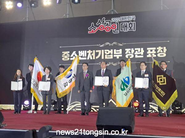 김해시는 2일 고양킨텍스 제1전시장에서 열린 ‘2022년 대한민국 소상공인대회’에서 ‘중소벤처기업부 장관 표창’을 수상했다고 밝혔다. 소상공인 최대 축제로 올해 17회를 맞는 대한민국 소상공인대회는 중소벤처기업부가 주최하고 소상공인시장진흥공단, 소상공인연합회가 주관해 소상공인 발전에 기여한 유공자와 단체를 발굴, 성과를 공유하고자 모범 소상공인, 육성 공로자, 지원 우수단체 3개 부문으로 진행됐다.