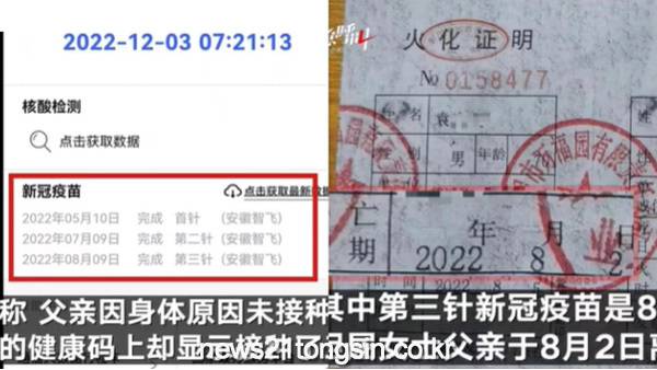 지난 3일 후난성 창사의 한 여성이 "어찌 된 영문인지 돌아가신 아버지의 방역용 휴대전화 애플리케이션에 아버지가 백신 접종을 완료한 것으로 돼 있다"는 글을 SNS에 올렸다고 신경보 등이 보도했다.