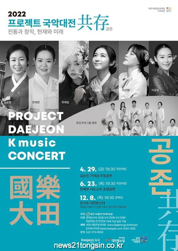 대전시립연정국악원(이하 국악원)은 우리 지역 국악인 초청 2022 프로젝트 국악대전<공존·共存 Ⅲ>, <콘서트 대전 판스타>를 12월 8일(목) 19시 30분 국악원 큰마당에서 개최한고 밝혔다.