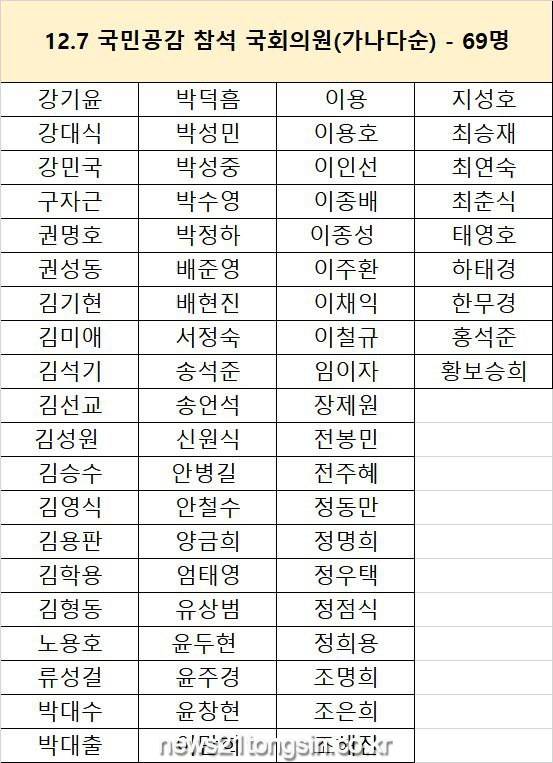 이하 12.7 국민공감 참석 국회의원 명단(가나다순)