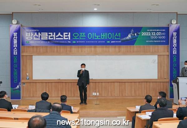 또한, 오후 학술정보원 대형강의실에서 열린 ‘방산혁신클러스터 오픈 이노베이션’은 경남창원방산혁신클러스터사업단이 주최하고, 대우조선해양이 후원하는 가운데 지역내 주요 체계기업(대우조선해양, 한화시스템, 한국항공우주산업, 효성중공업, KTE)이 필요로 하는 기술과 중소벤처기업들이 보유한 기술을 매칭시켜 기술력 있는 중소벤처기업들이 방산 사업에 활발하게 참여할 수 있도록 지원하는 기술교류회 형식으로 진행됐다.