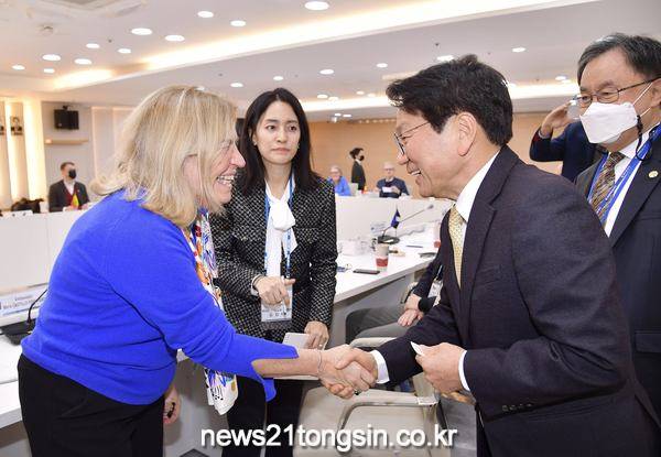 마리아 카스티요 페르난데즈 주한유럽연합대사는 “광주는 민주주의, 인권의 가치를 중시하는 역사 가득한 도시인데다 친환경 디지털 전환이 매우 중요한 시점에서 광주는 미래를 준비하고 있는 도시다”며 “도시 간 협력을 통해 인적교류를 강화하고 끈끈한 관계를 맺자”고 전했다.