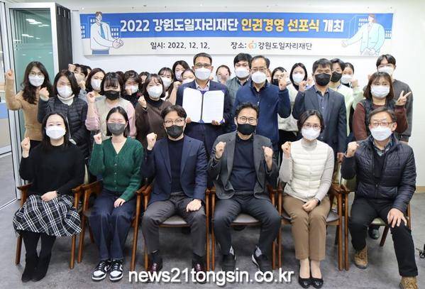 재단법인 강원도일자리재단(대표이사 박광용)은 12월 12일 재단 회의실에서 전 직원이 참석한 가운데 인권경영 선포식을 개최했다.