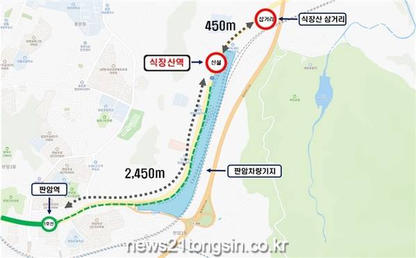 식장산역이 신설되면 판암역에서 식상산삼거리까지 이동거리가 2,900m가 450m로 단축되고, 보행 시간은 47분에서 7분으로 40분 단축될 것으로 예상된다.