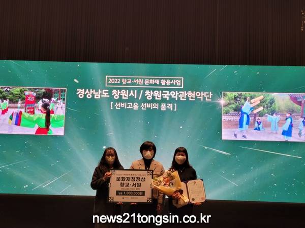 창원특례시(시장 홍남표)는 14일 문화재청이 주관하는 ‘2022 지역 문화재 활용 우수사업’ 평가에서 향교·서원 문화재 활용사업 분야에서 문화재청장상을 수상했다고 밝혔다.