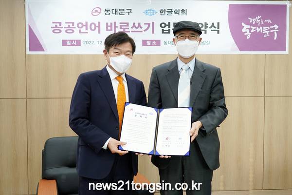 이필형 동대문구청장은 “이번 한글학회와의 공공언어 바로쓰기 업무협약으로 공공언어를 쉽고 바르게 사용함으로써 주민과의 소통을 강화하고 아울러 구민의 올바른 국어사용을 위해 힘쓰겠다”라고 말했다.