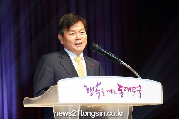 ▲ 사진=이필형 동대문구청장이 2022년 장애인재활증진대회에서 축사를 하고 있다.동대문구(구청장 이필형)가 장애인의 친목 도모와 자활자립 의지 고취를 위해 15일 오후 1시 30분 동대문구청 2층 다목적강당에서 장애인재활증진대회를 개최했다.