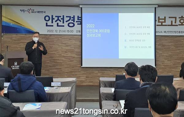경북도는 지난 21일 오후 안동 씨엠파크 호텔에서 재난안전 전문가 안전경북 365 포럼위원 등 60여 명이 참석한 가운데 최종 성과보고회를 가졌다.