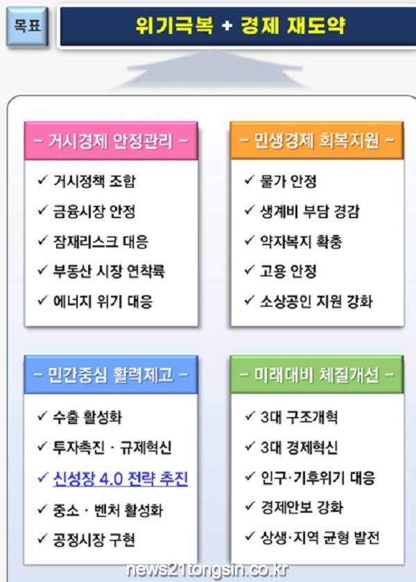 이에따라 정부는 위기 상황을 극복하면서 동시에 경제를 재도약시키는데 중점을 두기로 했다.