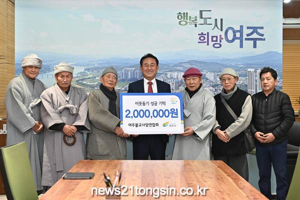 여주불교사암연합회(회장 지행법진 스님)는 26일 여주시청을 방문해 지역 내 어려운 이웃을 위해 사용해달라며 성금 200만원을 기탁했다.