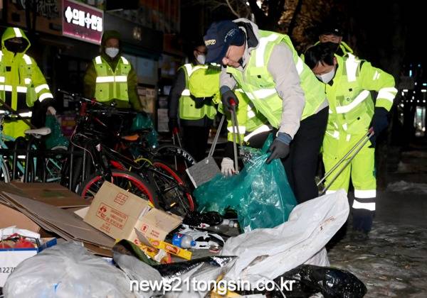 유정복 인천시장이 이른 새벽 거리환경정비로 계묘년 새해 민생현장 행보를 시작했다.
