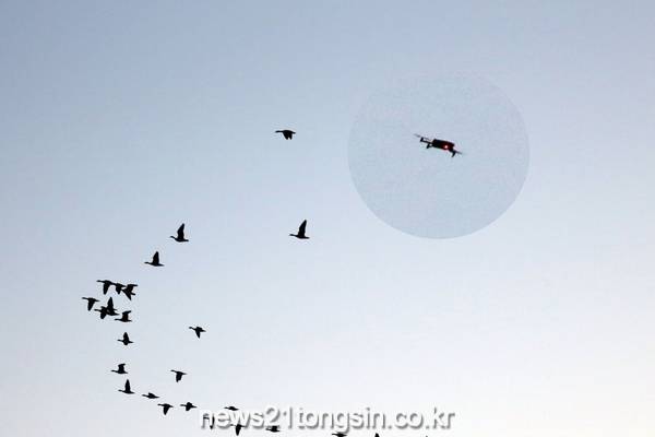 철새들은 드론이 날 때 발생하는 기계 소음과 드론의 색다른 모양새로 천적을 마주하는 듯한 긴장을 하게 되며, 민감한 반응을 보일 수 있다. 또한 철새의 휴식을 방해할 뿐 아니라 비행 충돌로 이어져 철새 생존과 서식지 안전에 위협을 가하게 된다.