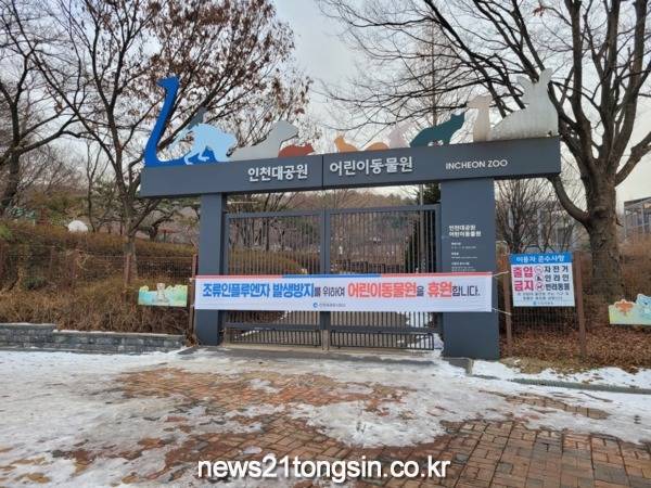 인천광역시(시장 유정복)는 전국에서 조류인플루엔자가 지속적으로 발생함에 따라 1월 5일부터 인천대공원 어린이동물원을 임시휴원하기로 결정했다고 밝혔다.