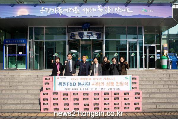 서울 은평구(구청장 김미경)는 지난 4일 동원F&B 봉사단과 희망온돌 따뜻한 겨울나기 사랑의 이웃돕기 성품 전달식을 개최했다.