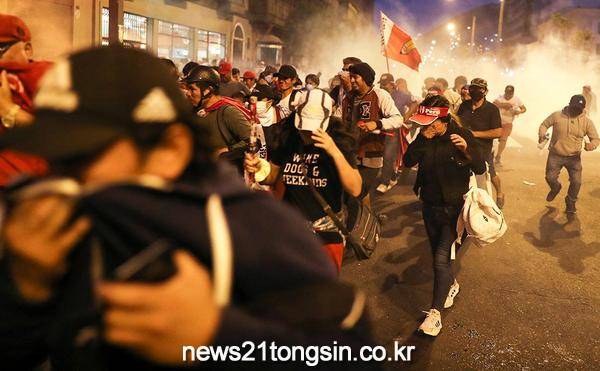 현지시각 9일 페루 남부 푸노에서 대규모 시위대가 훌리아카 공항 인근에서 경찰과 충돌했다.