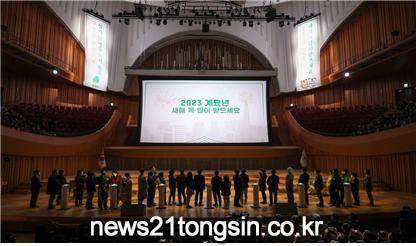 송파구(구청장 서강석)가 지난 10일 구민이 주인공이 된 ‘2023 신년인사회’를 열고 새해의 힘찬 출발을 알렸다.