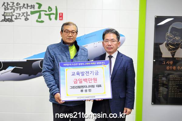 그린산림엔지니어링(대표자 류성민)은 지난 11일 군위군청을 방문하여 지역의 교육 발전과 인재양성을 위해 써달라며 교육발전기금 100만원을 기탁했다.