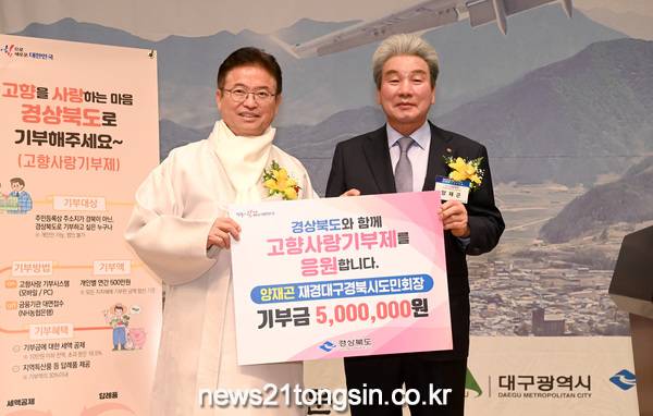 경상북도는 지난 12일 서울에서 열린 ‘2023 재경 대구경북인 신년교례회’ 행사에 앞서 양재곤 재경대구경북시도민회장이 고향사랑 기부금 개인 최고 기부 한도인 500만원을 지역에 쾌척했다고 밝혔다.