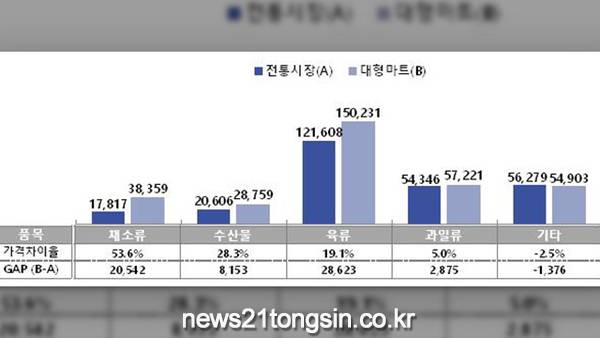 올해 설 차례상을 차리는 데 드는 비용이 전통시장에서 구매할 때 대형마트보다 5만원 이상 저렴한 것으로 조사됐다.