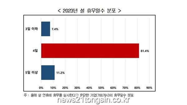 한국경영자총협회는 전국 5인 이상 785개 기업을 대상으로 실시한 ‘2023년 설 휴무 실태조사’ 결과를 발표했다.